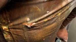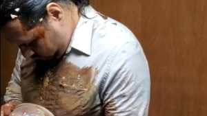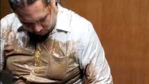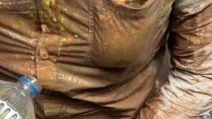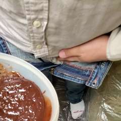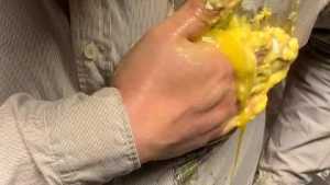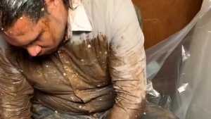One and a half hours of mess from two different angles. I start by filing my pockets and underwear with whole raw eggs, smashing them in my clothes. I add dry vanilla pudding mix to the slimy eggs and smear it all around. Then I fill my shirt and pants pockets with sloppy chocolate pudding and dump the rest right into my pants. Then I add some dry pancake batter creating a thick slop. I fill all my pockets again this time with oil and mix up another bowl of chocolate pudding to fill my underwear. Then I mix up a big bowl of pancake batter, take off my underwear and put them in the bowl, coating them inside and out, before putting them back on. I rub the mess around and play with my cock, and use my socks to soak up the mess before putting them back on. I add some water to thin out the mess before adding dry chocolate cake batter to thicken it back up. I cover the inside and outside of my jeans and underwear with the chocolate cake batter and smash a few more eggs in my pants before cumming. One camera shows full body and the other camera is overhead with an angle to look down my jeans as I fill them with mess.